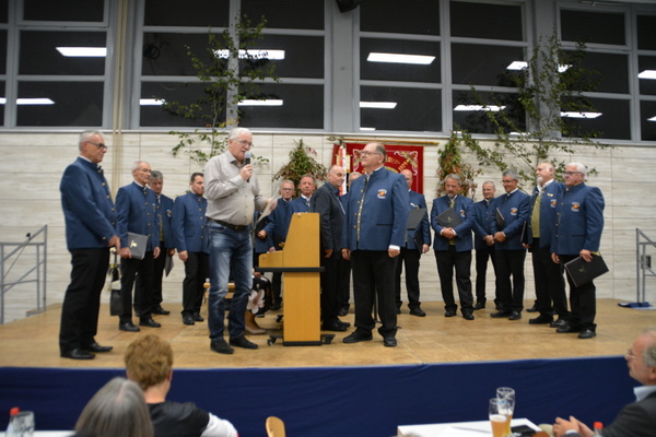 Doch wurde nicht nur gesungen. Dieter Dürrschnabel, Vertreter des Chorverband Zollernalb-Sigmaringen, hatte eine ganz besondere Urkunde und Anstecknadel dabei.